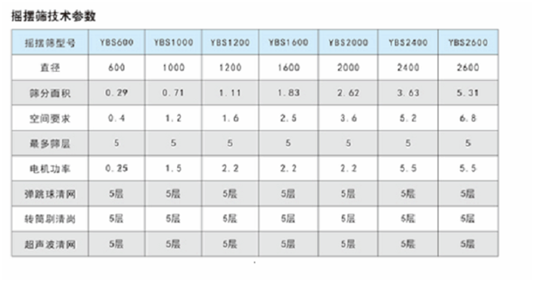 YBS搖擺篩的技術參數